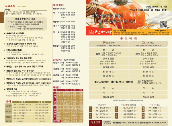 2014년 10월 26일 주보 페이지 정보 작성자 yabc 작성일14-10-25 00:00 조회12,234회 댓글0건 관련링크 목록 본문 2014년 10월 26일 주보 댓글목록 등록된 댓글이 없습니다. 목록