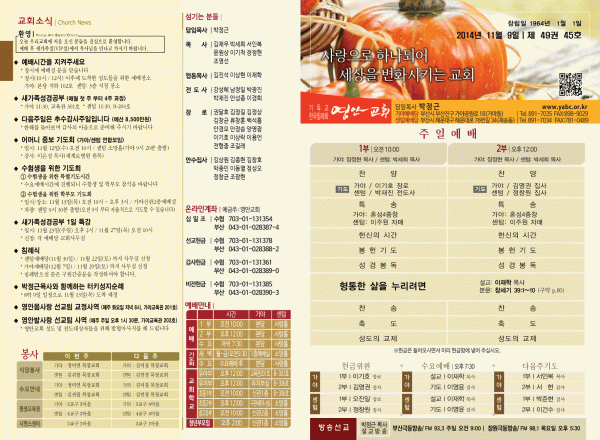 2014년 11월 9일 주보 페이지 정보 작성자 yabc 작성일14-11-08 00:00 조회10,806회 댓글0건 관련링크 목록 본문 2014년 11월 9일 주보 댓글목록 등록된 댓글이 없습니다. 목록