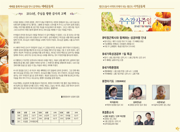 2014년 11월 16일 주보 페이지 정보 작성자 yabc 작성일14-11-15 00:00 조회12,661회 댓글0건 관련링크 목록 본문 2014년 11월 16일 주보 댓글목록 등록된 댓글이 없습니다. 목록