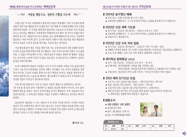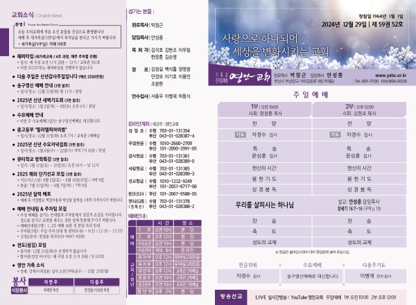2025년 12월 29일 주보 페이지 정보 작성자 관리지기 작성일24-12-28 10:34 조회2,874회 댓글0건 관련링크 목록 본문 2025년 12월 29일 주보 댓글목록 등록된 댓글이 없습니다. 목록