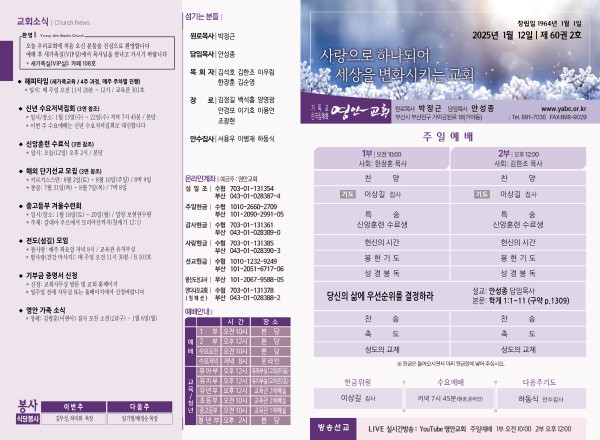 2025년 1월 12일 주보 페이지 정보 작성자 관리지기 작성일25-01-11 10:40 조회3,055회 댓글0건 관련링크 목록 본문 2025년 1월 12일 주보 댓글목록 등록된 댓글이 없습니다. 목록