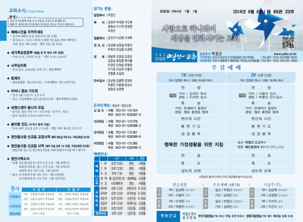 2014년 6월 8일 주보 페이지 정보 작성자 yabc 작성일14-06-07 00:00 조회11,896회 댓글0건 관련링크 목록 본문 2014년 6월 8일 주보 댓글목록 등록된 댓글이 없습니다. 목록