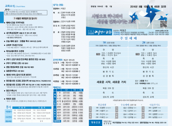 2014년 8월 10일 주보 페이지 정보 작성자 yabc 작성일14-08-09 00:00 조회11,149회 댓글0건 관련링크 목록 본문 2014년 8월 10일 주보 댓글목록 등록된 댓글이 없습니다. 목록