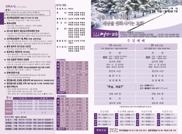 2014년 2월 16일 주보 페이지 정보 작성자 yabc 작성일14-02-15 00:00 조회10,831회 댓글0건 관련링크 목록 본문 2014년 2월 16일 주보 댓글목록 등록된 댓글이 없습니다. 목록