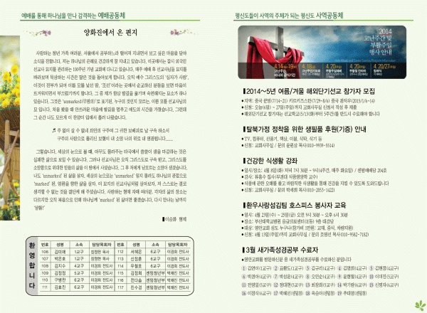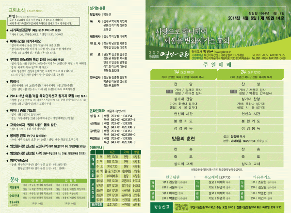 2014년 4월 6일 주보 페이지 정보 작성자 yabc 작성일14-04-05 00:00 조회10,556회 댓글0건 관련링크 목록 본문 2014년 4월 6일 주보 댓글목록 등록된 댓글이 없습니다. 목록