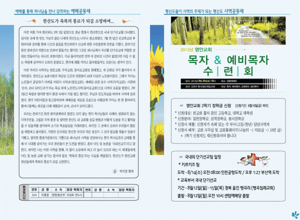 영안교회 정규훈련을 소개합니다
