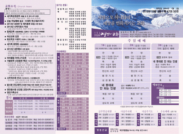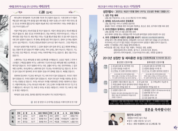 2012년 12월 9일 주보 페이지 정보 작성자 yabc 작성일12-12-08 00:00 조회11,530회 댓글0건 관련링크 목록 본문 2012년 12월 9일 주보 댓글목록 등록된 댓글이 없습니다. 목록