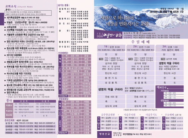 2013년 1월 6일 주보 페이지 정보 작성자 yabc 작성일13-01-05 00:00 조회10,979회 댓글0건 관련링크 목록 본문 * 2013년 1월 6일 주보 댓글목록 등록된 댓글이 없습니다. 목록