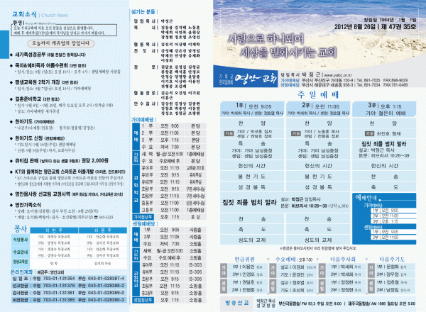 2012년 8월 26일 주보 페이지 정보 작성자 yabc 작성일12-08-25 00:00 조회11,205회 댓글0건 관련링크 목록 본문 2012년 8월 26일 주보 댓글목록 등록된 댓글이 없습니다. 목록