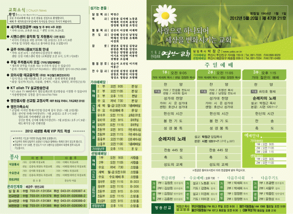 2012년 5월 20일 주보 페이지 정보 작성자 yabc 작성일12-05-19 00:00 조회10,981회 댓글0건 관련링크 목록 본문 2012년 5월 20일 주보 댓글목록 등록된 댓글이 없습니다. 목록