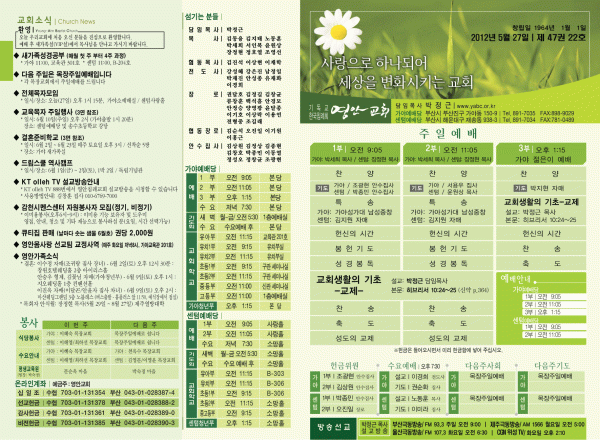 2012년 5월 27일 주보 페이지 정보 작성자 yabc 작성일12-05-26 00:00 조회11,097회 댓글0건 관련링크 목록 본문 2012년 5월 27일 주보 댓글목록 등록된 댓글이 없습니다. 목록