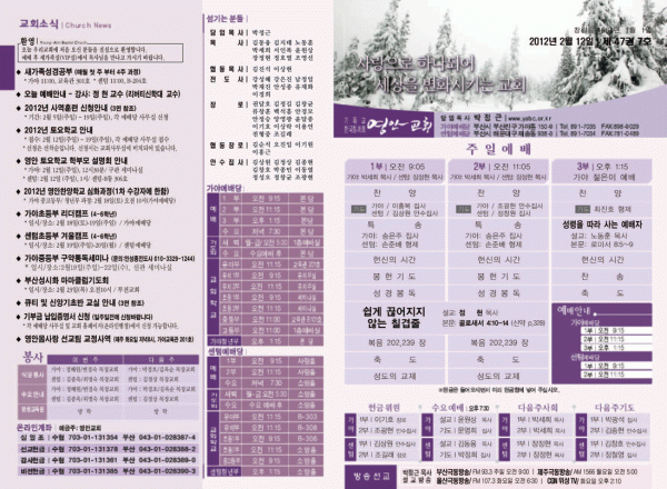 2012년 2월 12일 주보 페이지 정보 작성자 yabc 작성일12-02-11 00:00 조회10,838회 댓글0건 관련링크 목록 본문 2012년 2월 12일 주보 댓글목록 등록된 댓글이 없습니다. 목록