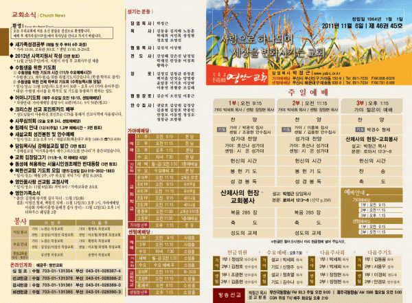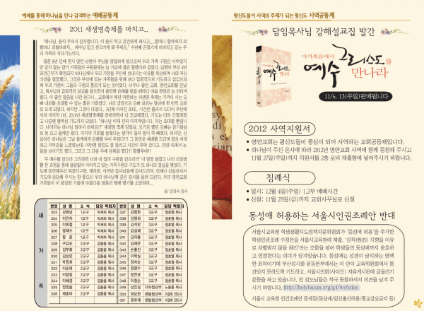 2011년 11월 6일 주보 페이지 정보 작성자 yabc 작성일11-11-05 00:00 조회10,925회 댓글0건 관련링크 목록 본문 2011년 11월 6일 주보 댓글목록 등록된 댓글이 없습니다. 목록