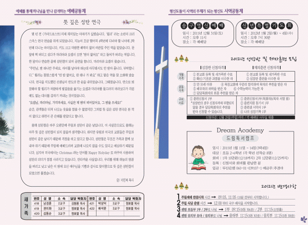 2011년 12월 25일 주보 페이지 정보 작성자 yabc 작성일11-12-24 00:00 조회10,901회 댓글0건 관련링크 목록 본문 2011년 12월 25일 주보 댓글목록 등록된 댓글이 없습니다. 목록