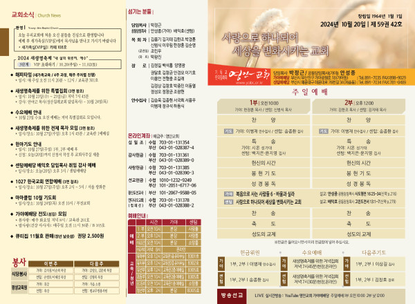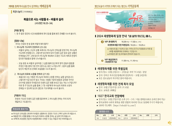 2024년 10월 20일 주보 (가야예배당) 페이지 정보 작성자 관리지기 작성일24-10-19 11:37 조회3,075회 댓글0건 관련링크 목록 본문 2024년 10월 20일 주보 (가야예배당) 댓글목록 등록된 댓글이 없습니다. 목록