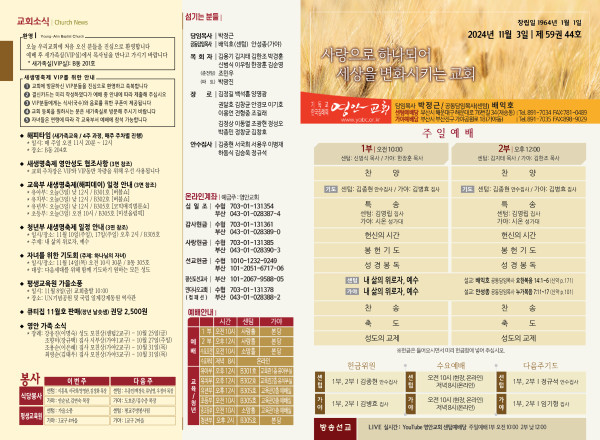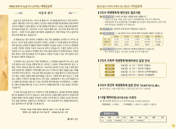 2024년 11월 3일 주보 (센텀예배당) 페이지 정보 작성자 관리지기 작성일24-11-02 10:36 조회2,516회 댓글0건 관련링크 목록 본문 2024년 11월 3일 주보 (센텀예배당) 댓글목록 등록된 댓글이 없습니다. 목록