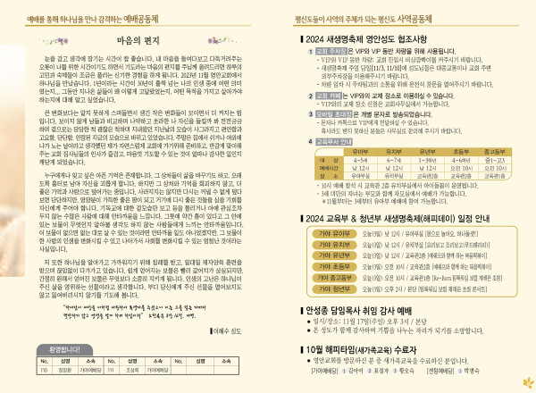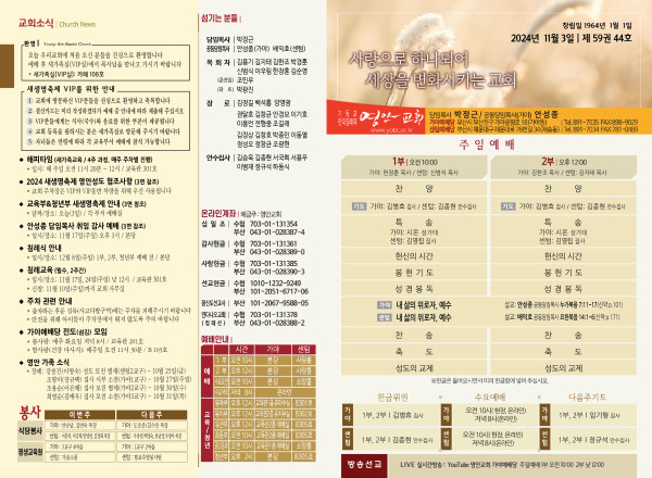 2024년 11월 3일 주보 (가야예배당) 페이지 정보 작성자 관리지기 작성일24-11-02 10:45 조회2,607회 댓글0건 관련링크 목록 본문 2024년 11월 3일 주보 (가야예배당) 댓글목록 등록된 댓글이 없습니다. 목록