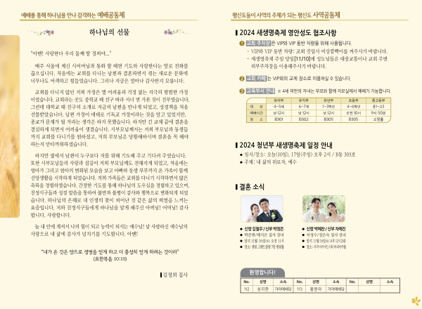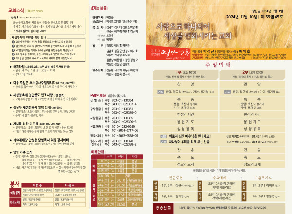 2024년 11월 10일 주보 (센텀예배당) 페이지 정보 작성자 관리지기 작성일24-11-09 10:39 조회2,600회 댓글0건 관련링크 목록 본문 2024년 11월 10일 주보 (센텀예배당) 댓글목록 등록된 댓글이 없습니다. 목록