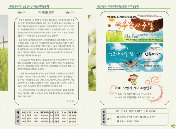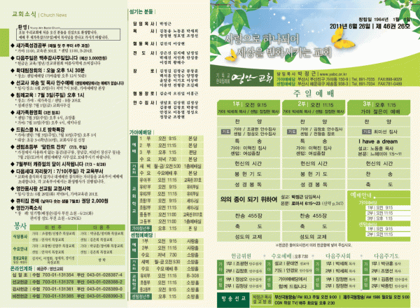 2011년 6월 26일 주보 페이지 정보 작성자 yabc 작성일11-06-25 00:00 조회11,079회 댓글0건 관련링크 목록 본문 2011년 6월 26일 주보 댓글목록 등록된 댓글이 없습니다. 목록