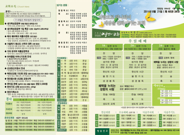 2011년 8월 21일 주보 페이지 정보 작성자 yabc 작성일11-08-20 00:00 조회11,502회 댓글0건 관련링크 목록 본문 2011년 8월 21일 주보 댓글목록 등록된 댓글이 없습니다. 목록