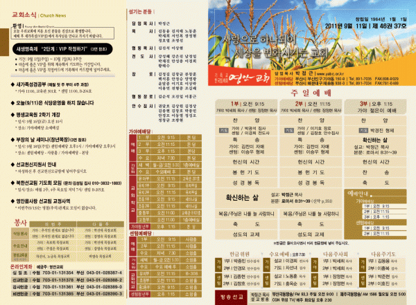 2011년 9월 11일 주보 페이지 정보 작성자 yabc 작성일11-09-10 00:00 조회11,064회 댓글0건 관련링크 목록 본문 2011년 9월 11일 주보 댓글목록 등록된 댓글이 없습니다. 목록
