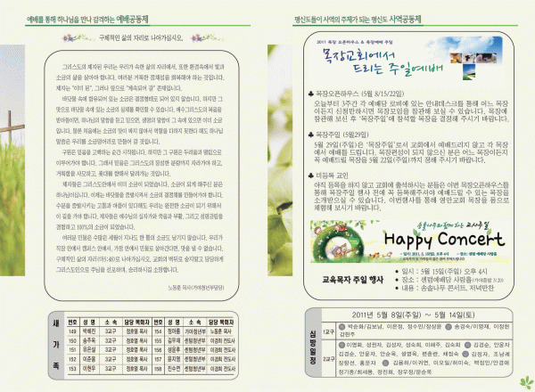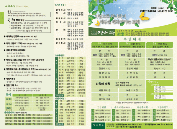 2011년 5월 8일 주보 페이지 정보 작성자 yabc 작성일11-05-07 00:00 조회10,928회 댓글0건 관련링크 목록 본문 2011년 5월 8일 주보 댓글목록 등록된 댓글이 없습니다. 목록