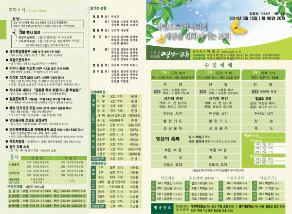 2011년 5월 15일 주보 페이지 정보 작성자 yabc 작성일11-05-14 00:00 조회11,192회 댓글0건 관련링크 목록 본문 2011년 5월 15일 주보 댓글목록 등록된 댓글이 없습니다. 목록