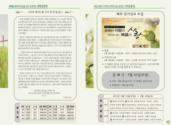 2011년 6월 12일 주보 페이지 정보 작성자 yabc 작성일11-06-11 00:00 조회11,065회 댓글0건 관련링크 목록 본문 2011년 6월 12일 주보 댓글목록 등록된 댓글이 없습니다. 목록