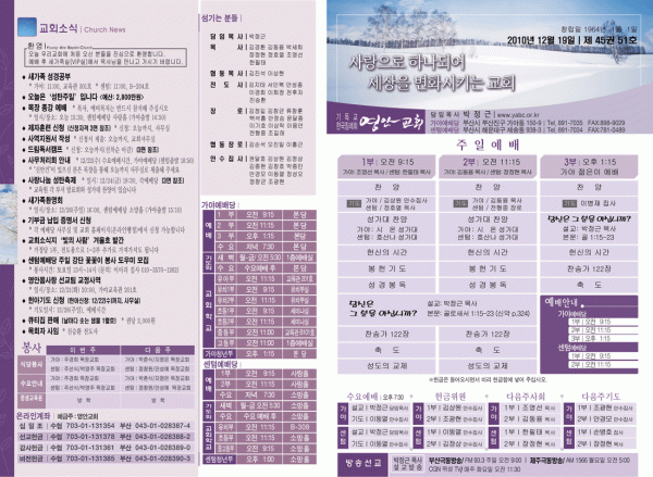 2010년 12월 19일 주보 페이지 정보 작성자 yabc 작성일10-12-18 00:00 조회11,088회 댓글0건 관련링크 목록 본문 2010년 12월 19일 주보 댓글목록 등록된 댓글이 없습니다. 목록