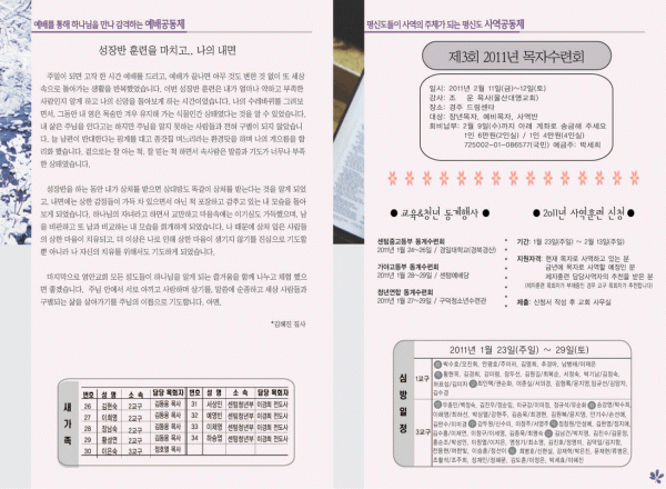 2011년 1월 23일 주보 페이지 정보 작성자 yabc 작성일11-01-22 00:00 조회12,166회 댓글0건 관련링크 목록 본문 2011년 1월 23일 주보 댓글목록 등록된 댓글이 없습니다. 목록