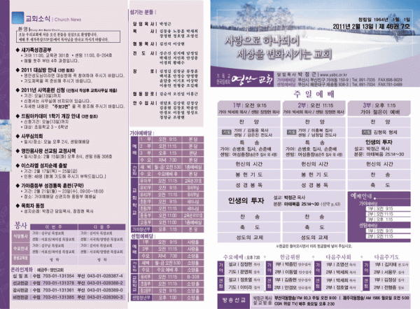 2011년 2월 13일 주보 페이지 정보 작성자 yabc 작성일11-02-12 00:00 조회11,515회 댓글0건 관련링크 목록 본문 2011년 2월 13일 주보 댓글목록 등록된 댓글이 없습니다. 목록