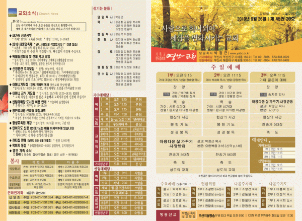 2010년 9월 26일 주보 페이지 정보 작성자 yabc 작성일10-09-25 00:00 조회11,546회 댓글0건 관련링크 목록 본문 2010년 9월 26일 주보 댓글목록 등록된 댓글이 없습니다. 목록