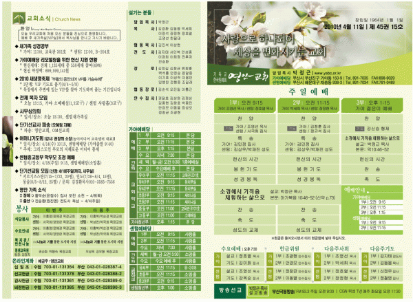 2010년 4월 11일 주보 페이지 정보 작성자 yabc 작성일10-04-10 00:00 조회11,720회 댓글0건 관련링크 목록 본문 2010년 4월 11일 주보 댓글목록 등록된 댓글이 없습니다. 목록