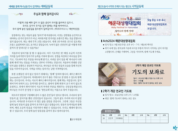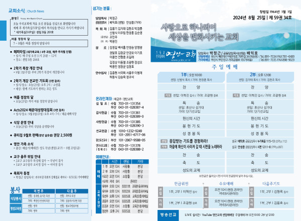 2024년 8월 25일 주보 (센텀예배당) 페이지 정보 작성자 관리지기 작성일24-08-24 10:51 조회2,636회 댓글0건 관련링크 목록 본문 2024년 8월 25일 주보 (센텀예배당) 댓글목록 등록된 댓글이 없습니다. 목록