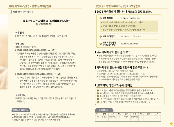 2024년 9월 29일 주보 (가야예배당) 페이지 정보 작성자 관리지기 작성일24-09-28 11:15 조회2,941회 댓글0건 관련링크 목록 본문 2024년 9월 29일 주보 (가야예배당) 댓글목록 등록된 댓글이 없습니다. 목록