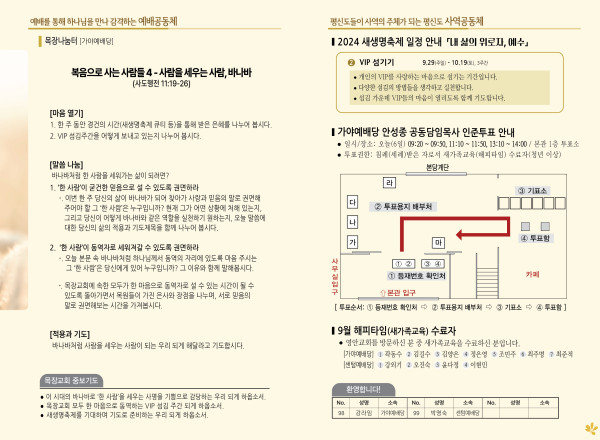 2024년 10월 6일 주보 (가야예배당) 페이지 정보 작성자 관리지기 작성일24-10-05 11:01 조회2,747회 댓글0건 관련링크 목록 본문 2024년 10월 6일 주보 (가야예배당) 댓글목록 등록된 댓글이 없습니다. 목록