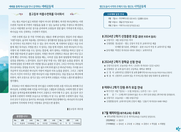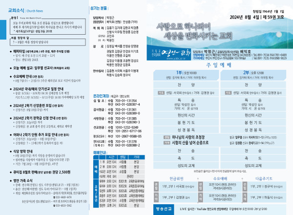 2024년 8월 4일 주보 (센텀예배당) 페이지 정보 작성자 관리지기 작성일24-08-03 11:23 조회2,747회 댓글0건 관련링크 목록 본문 2024년 8월 4일 주보 (센텀예배당) 댓글목록 등록된 댓글이 없습니다. 목록