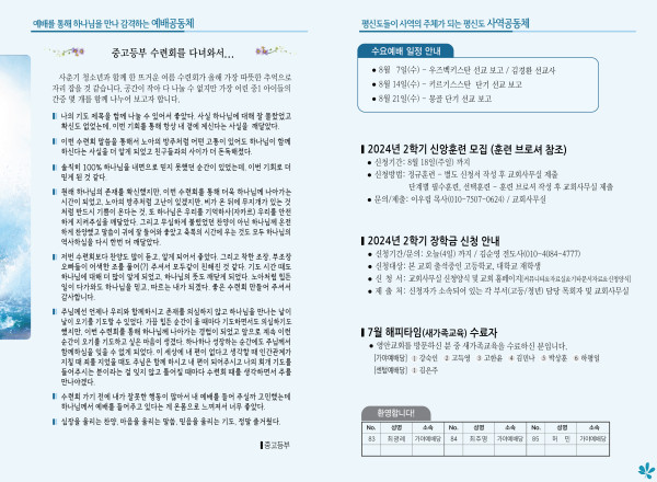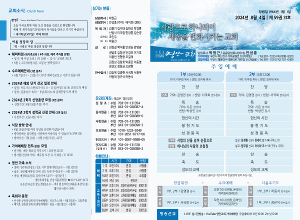 2024년 8월 4일 주보 (가야예배당) 페이지 정보 작성자 관리지기 작성일24-08-03 11:32 조회3,265회 댓글0건 관련링크 목록 본문 * 2024년 8월 4일 주보 (가야예배당) 댓글목록 등록된 댓글이 없습니다. 목록
