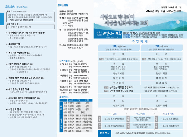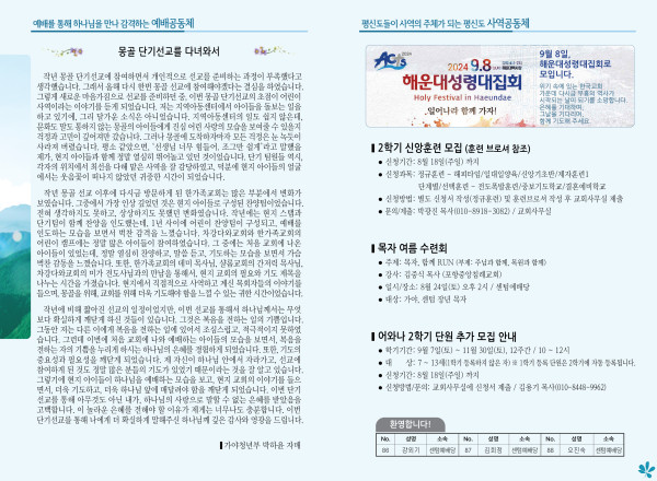 2024년 8월 11일 주보 (센텀예배당) 페이지 정보 작성자 관리지기 작성일24-08-10 10:52 조회2,776회 댓글0건 관련링크 목록 본문 2024년 8월 11일 주보 (센텀예배당) 댓글목록 등록된 댓글이 없습니다. 목록