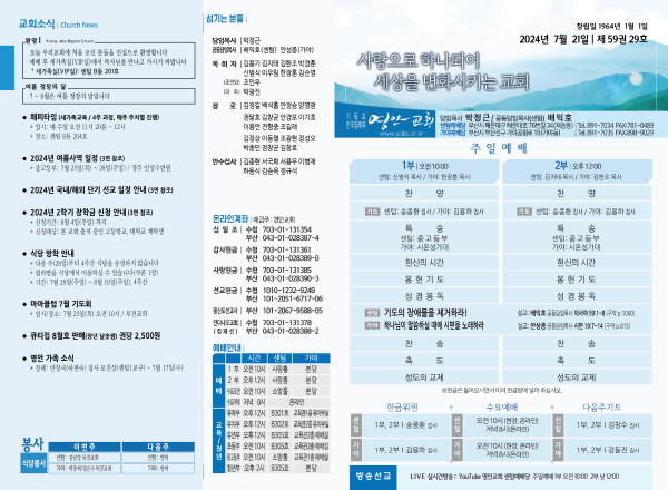 2024년 7월 21일 주보 (센텀예배당) 페이지 정보 작성자 관리지기 작성일24-07-20 10:46 조회2,749회 댓글0건 관련링크 목록 본문 2024년 7월 21일 주보 (센텀예배당) 댓글목록 등록된 댓글이 없습니다. 목록