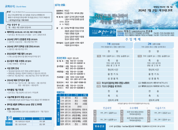 2024년 7월 21일 주보 (가야예배당) 페이지 정보 작성자 관리지기 작성일24-07-20 11:16 조회2,848회 댓글0건 관련링크 목록 본문 2024년 7월 21일 주보 (가야예배당) 댓글목록 등록된 댓글이 없습니다. 목록
