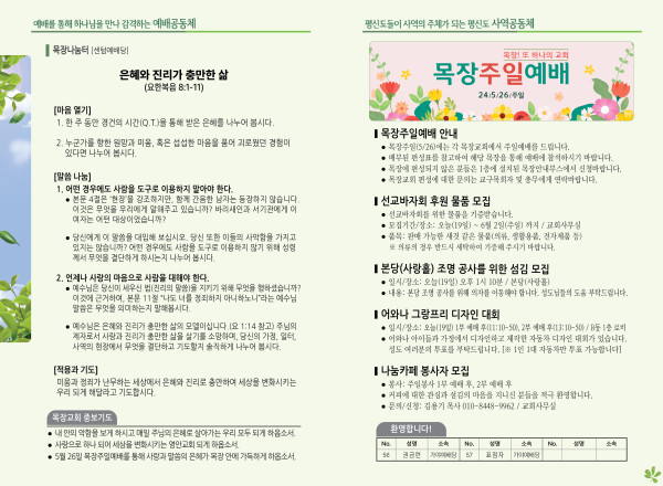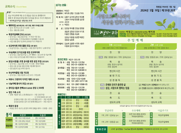 2024년 5월 19일 주보 (센텀예배당) 페이지 정보 작성자 관리지기 작성일24-05-18 10:55 조회2,998회 댓글0건 관련링크 목록 본문 2024년 5월 19일 주보 (센텀예배당) 댓글목록 등록된 댓글이 없습니다. 목록