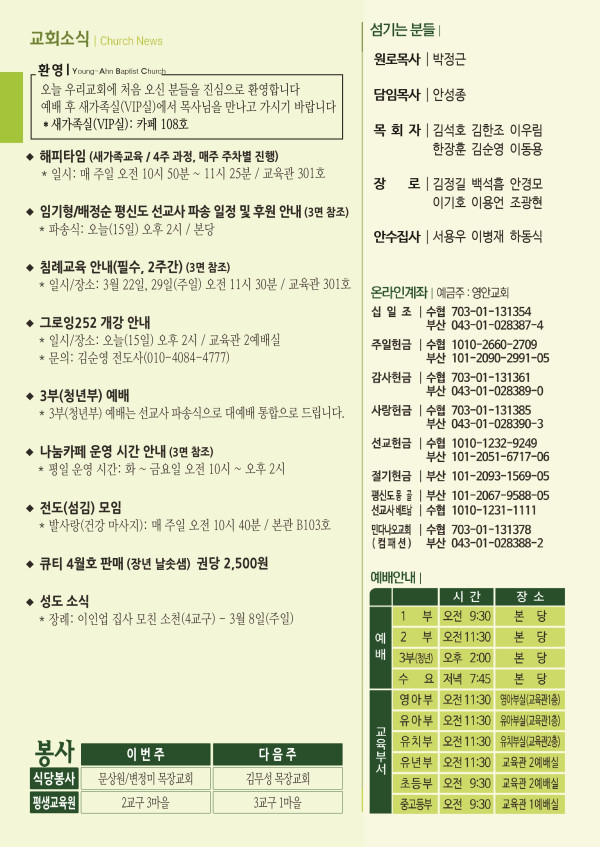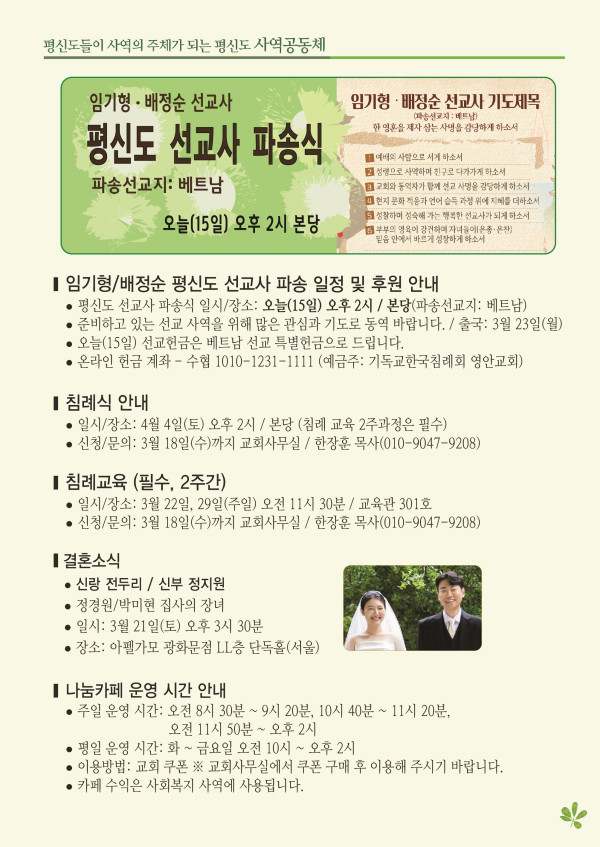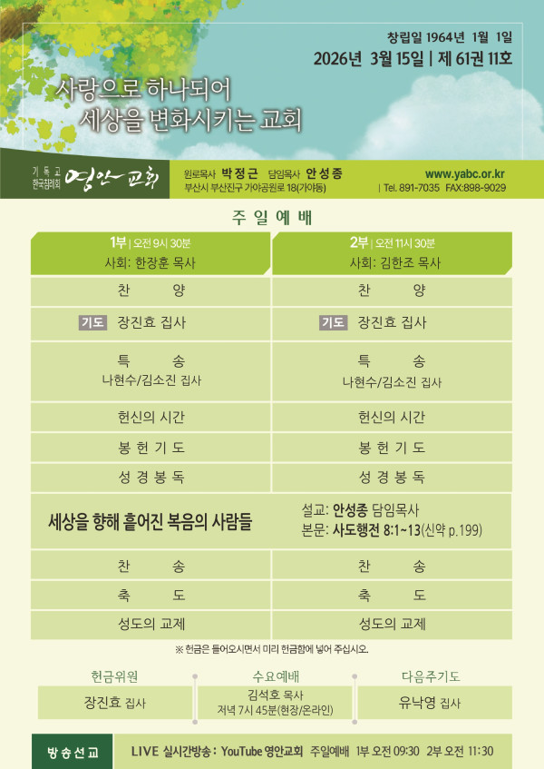 2026년 3월 15일 주보 페이지 정보 작성자 관리지기 작성일26-03-14 11:19 조회1,171회 댓글0건 관련링크 목록 본문 2026년 3월 15일 주보 댓글목록 등록된 댓글이 없습니다. 목록